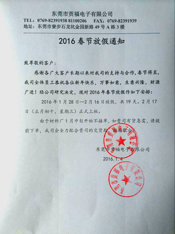 2016年春節(jié)放假