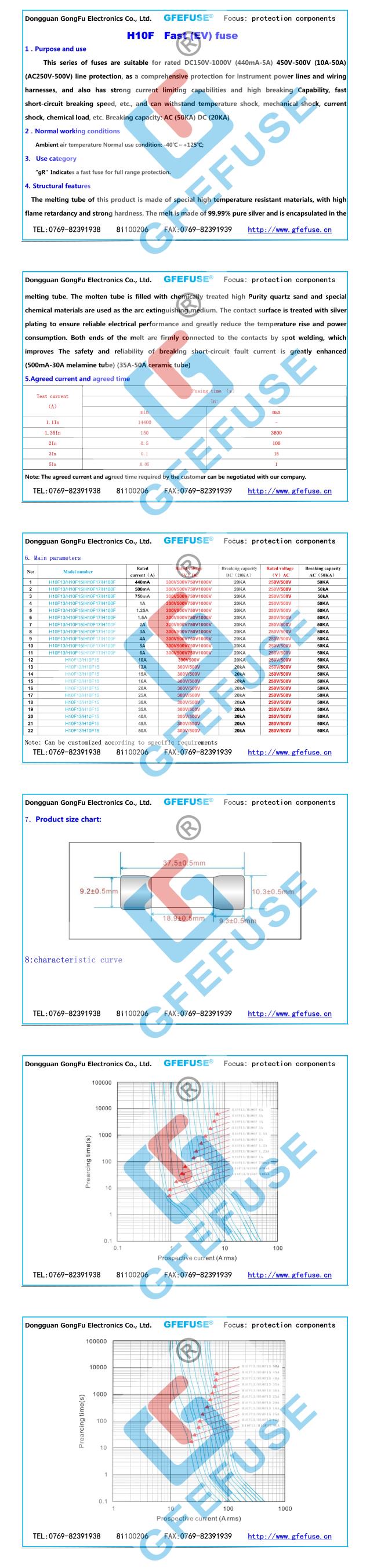 H10F快速直流熔斷器(0.44A-50A)(450V-500V)