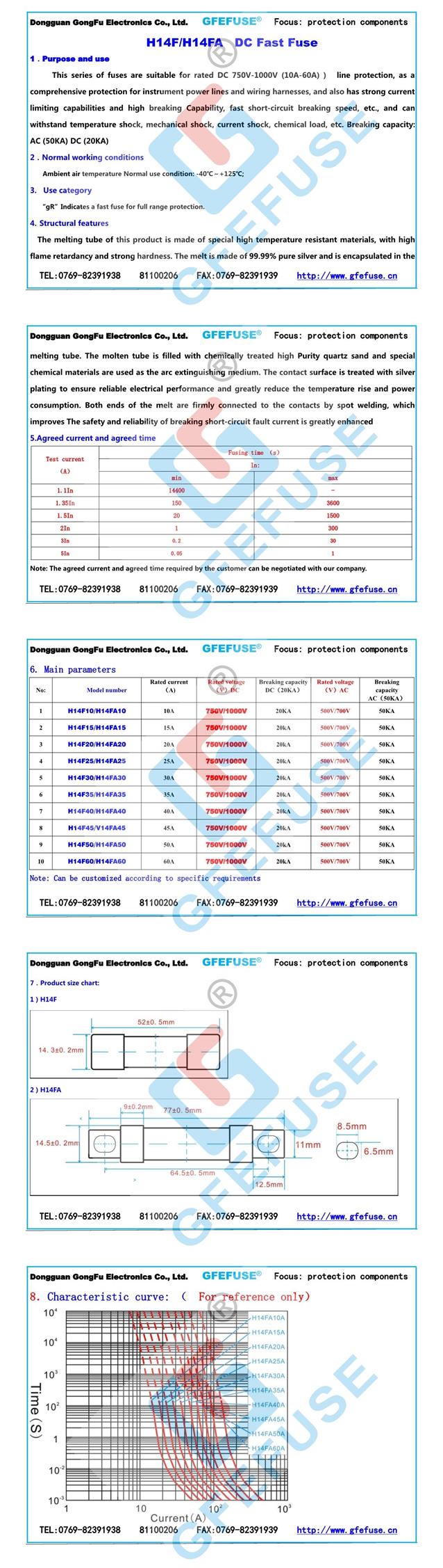 H14F/H14FA快速直流熔斷器(10A-60A)(750V1000V)