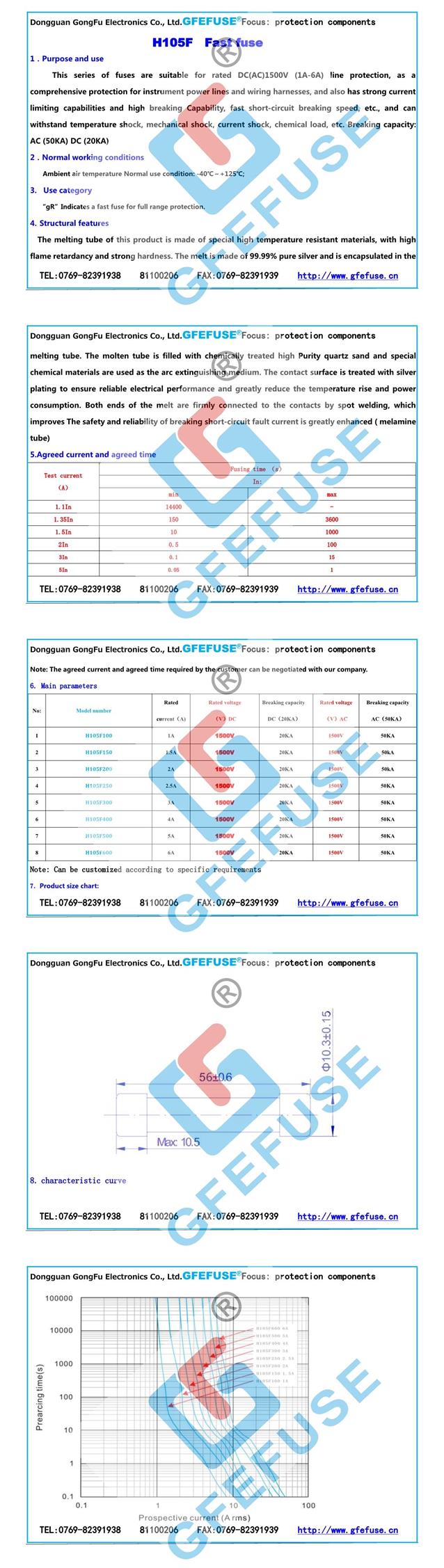 H105F(1A-6A)1500V快速熔斷器