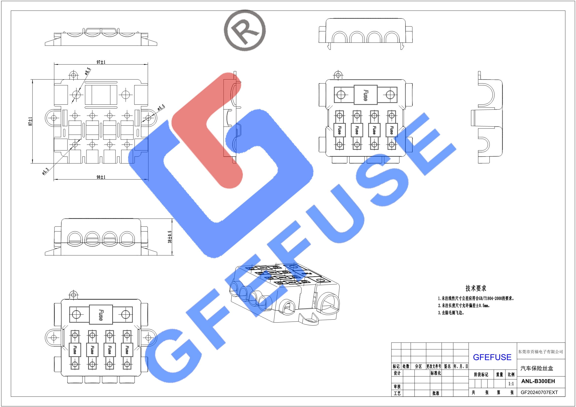 ANL-B300EH叉栓(螺栓)汽車保險(xiǎn)絲座(盒)