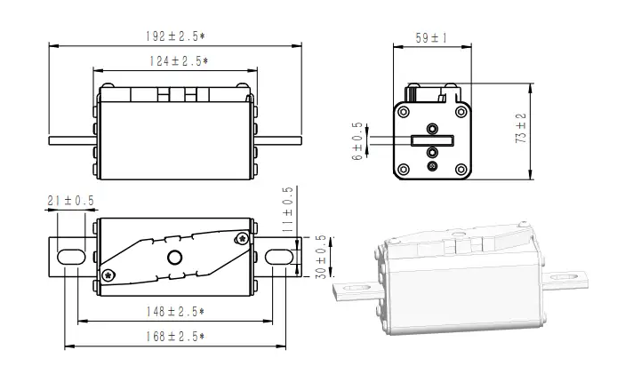 | Bolted | GFEVT1500-100B-59ES | 100A | 2370 | 8857 | 41 | 53 | ● |
